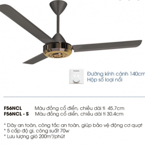Quạt Trần 3 Cánh Panasonic Màu Đồng Cổ Điển F-56NCL-S Ti 30.4cm